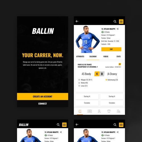 BALLIN connects young soccer players (12-20 years old) to recruiters at pro clubs and agents. Players fill out their sta