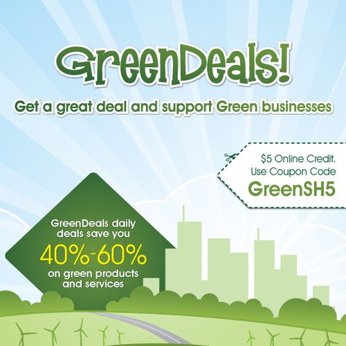 GreenDeals offers national daily deals (similar to Groupon) for green business