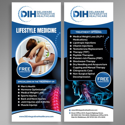 Men's Health, Hormone Optimization, Medical Weight Loss, Sports Injuries. Target audience is active adults who want to g