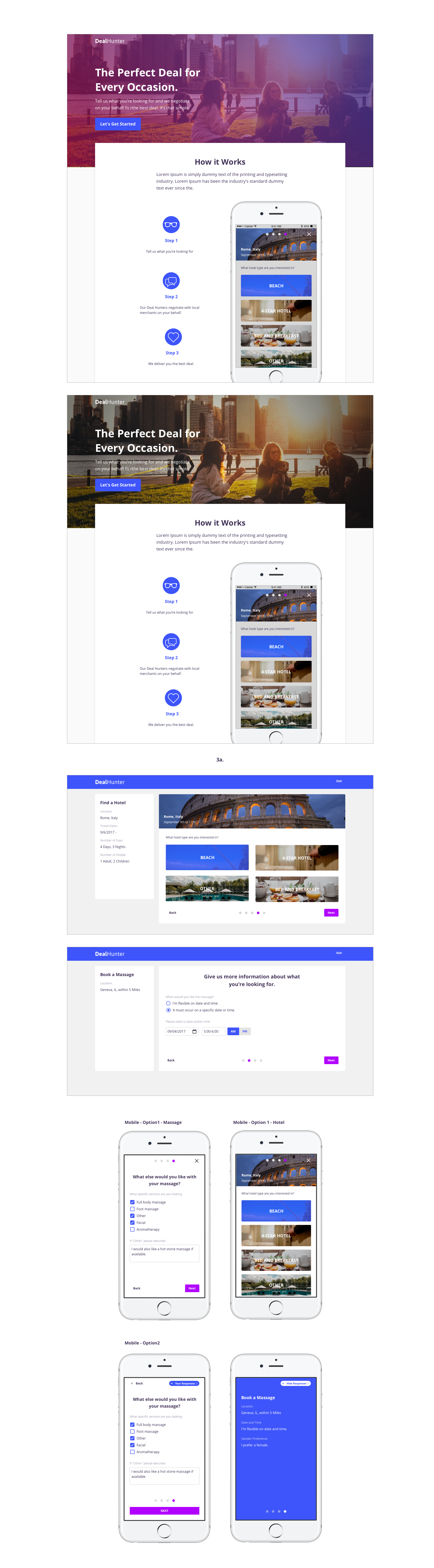 Landing page and onboarding concept for deal website.
